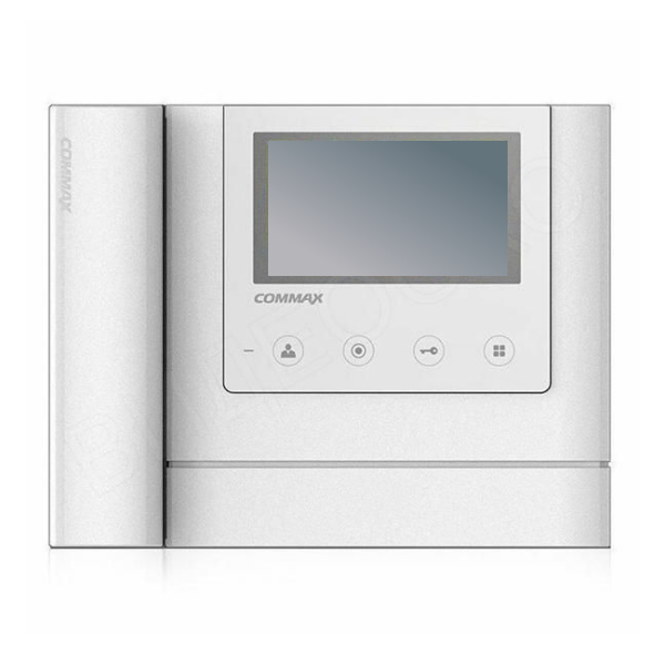 Монитор видеодомофона CDV-43MH Metalo белый COMMAX. С диагональю дисплея 4,3 дюйма, TFT LCD экраном, поддерживающий стандарты PAL/NTSC. Установка накладная, возможно подключение двух вызывных блоков и трубки DP-4VHP. С трубкой и сенсорными кнопками. Регулировка громкости. Питание от сети переменного тока 110-240В, встроенный блок питания.