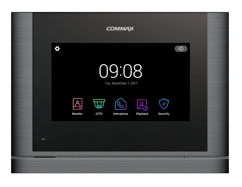 Монитор видеодомофона CDV-704MF темное серебро Black Smog COMMAX. Диагональ 7", AHD. Оборудован сенсорным LCD дисплеем 1024х600. Доступно подключение 2-х вызывных панелей DRC-40KHD или DRC-4CPHD, 2-х видеокамер 2 Mп. Возможно подключение до 3-х дополнительных мониторов в системе. Автоматическая запись видео и фото при вызове, запись по детектору движения. Поддержка карт памяти MicroSD до 256 Гб. Охранные функции. Питание 100-240В, 50/60 Гц.
