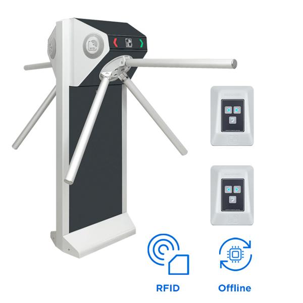 Турникет оснащен встроенными считывателями EM-Marin и контроллером CBU-260. Пропускная способность составляет до 35 чел./мин в режиме однократного прохода и до 60 чел./мин в режиме свободного прохода. Механизм турникета нормально-открытого типа, что гарантирует свободный проход в случае отключения электроэнергии или поступления сигнала тревоги.