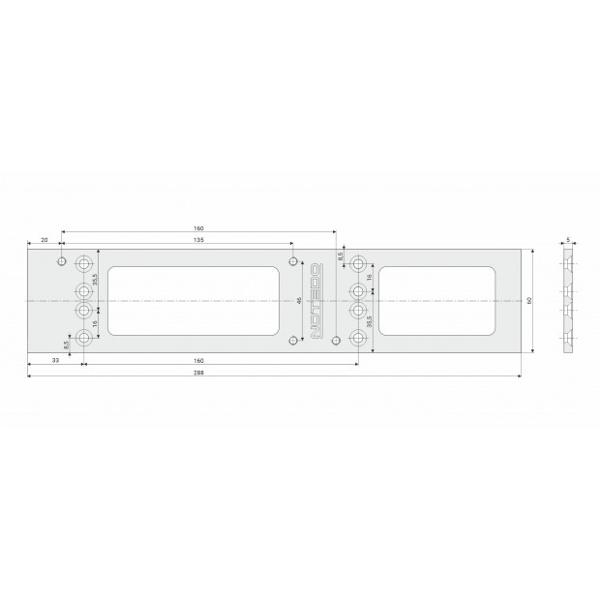Монтажная пластина для доводчиков DC-025-095 SL+HO+DA+BC, DC-050-150 DA+BC и DC-045-155 SL+HO+DA+BC. Упрощает монтаж при невозможности использования стандартных посадочных отверстий. Пластина обеспечивает надежное крепление доводчика как на дверном полотне, так и на раме. Изготовлена из металла, устойчива к коррозии и механическим повреждениям.
