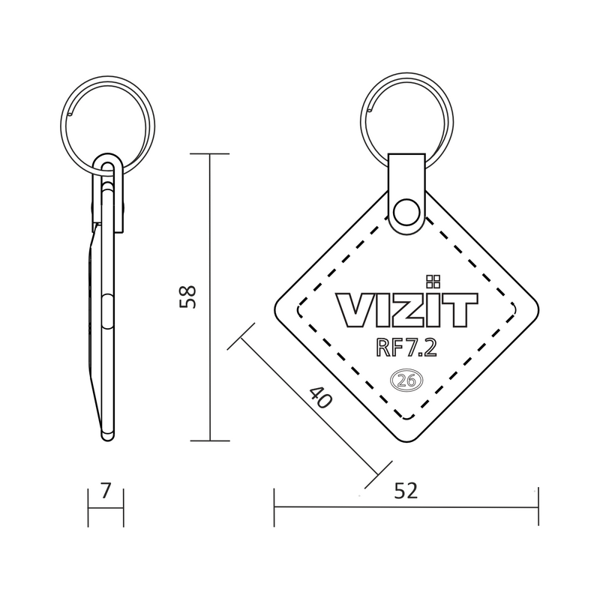 Особенностью данного RFID-ключа является возможность его привязки к PIN-коду блока вызова, что повышает безопасность системы. В случае необходимости санкционированного изготовления дубликата ключа, потребуется знание PIN-кода блока вызова и программатор VIZIT-DM15.