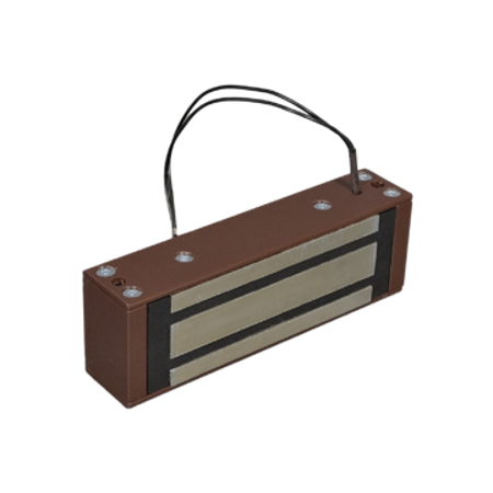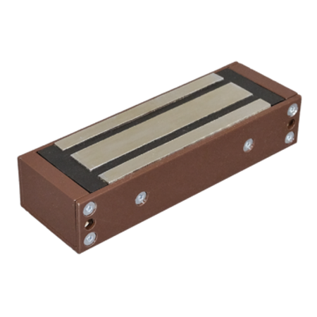 Замок электромагнитный НО TS-ML400-RU1 коричневый TANTOS. Усилие удержания 400 кг. Установка внутри помещений. Встроенная цепь размагничивания. Питание 12 В, потребление 400 мА. Рабочий температурный диапазон от -40 до +40 °C. Корпус из алюминия с порошковой окраской. Уголок в комплекте.