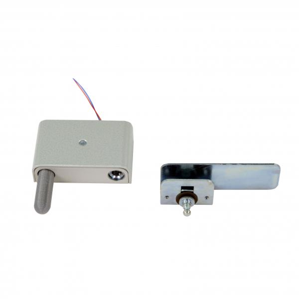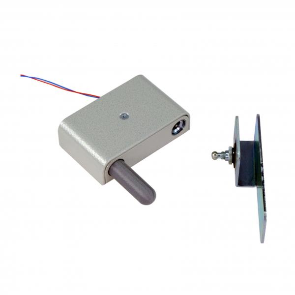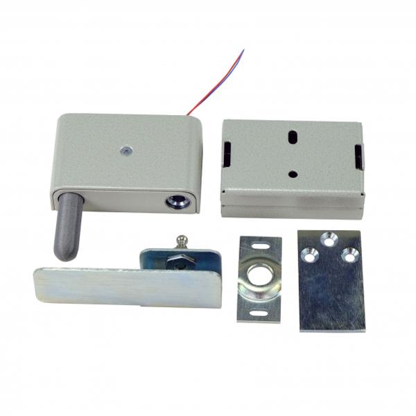 Специальный замок для торговой мебели из ЛДСП или алюминиевого профиля со стеклянными или ЛДСП дверями. Один замок блокирует две двери. Толщина стеклянной двери составляет 4-8 мм. Встроенный толкатель. Для открытия разблокированной двери необходимо нажать на нее, замок отодвинет и приоткроет дверь. Усилие удержания ригеля - 150 кг. Корпус замка выполнен из металла. Напряжение питания - 12В/0,1А, цвет - серебро.