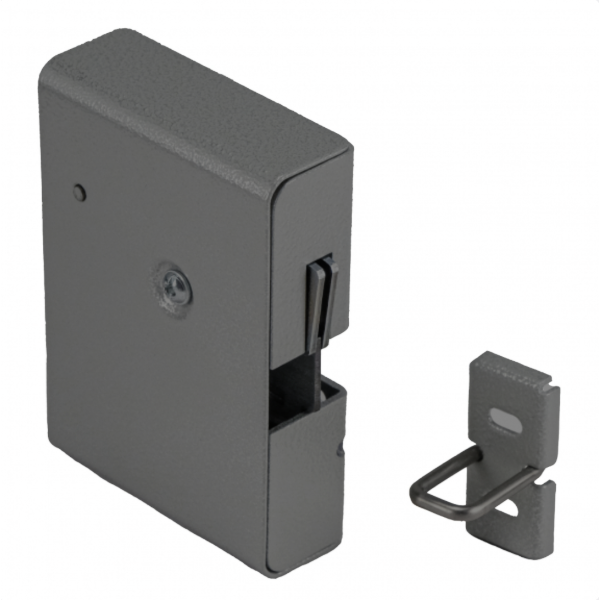 Предназначен для запирания дверей в мебели, шкафах и ячейках камер хранения в торговых помещениях, офисах, аквапарках, фитнес-центрах, бассейнах, магазинах, SPA-салонах и аналогичных местах. Оснащен датчиком положения двери и пружинным толкателем. При подаче напряжения питания замок разблокирует ригель и с помощью встроенного толкателя выталкивает дверь. Усилие удержания замка составляет не менее 250 кг, а начальное усилие выталкивания двери - 1,2 кг. Замок нормально закрыт и работает от источника питания постоянного тока 12 В и силой тока 0,4 А (в течение первой секунды). Цвет замка - графит.