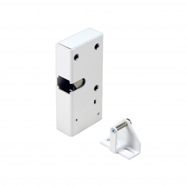 Замок нормально закрытого типа - открывается подачей напряжения 12 В. Оснащен встроенным датчиком состояния и устанавливается слева (петли справа). Оснащен толкателем. Встроенный толкатель при разблокировке приоткрывает дверцу, исключая необходимость в ручке.