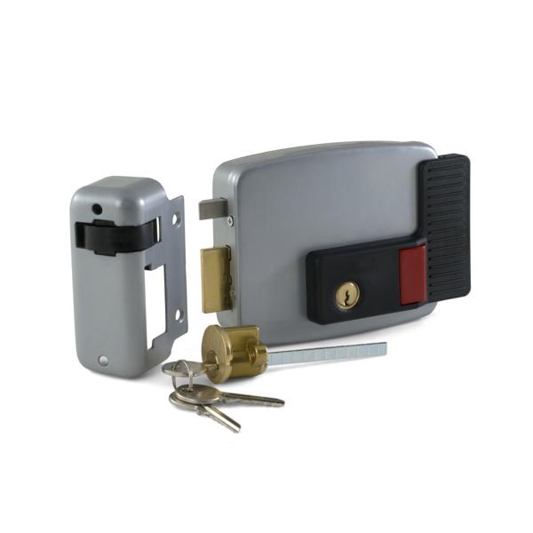 Электромеханический накладной замок нормально-закрытого типа, предназначен для установки на правые двери. Оснащен цилиндровым механизмом с внешней и внутренней стороны, доступно открывание ключом как снаружи, так и изнутри помещения. Кнопка с возможностью блокировки расположена на внутренней панели.