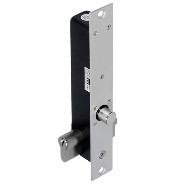 Замок нормально закрытый: в обычном состоянии он заперт. Открывание осуществляется двумя способами: подачей управляющего сигнала на желтый провод (подключение к общему проводу GND) или механически с помощью ключей и цилиндра, входящих в комплект.