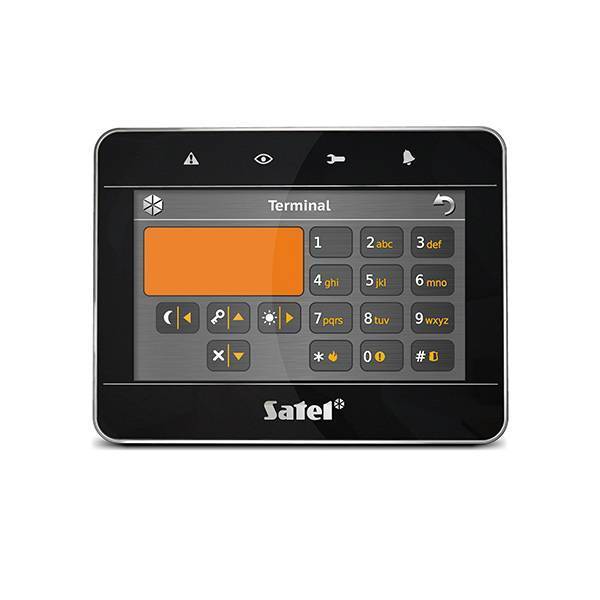 Клавиатура сенсорная SATEL INT-TSH-BSB. Сенсорная клавиатура. Корпус: черный-серебро-черный. Сочетает небольшой размер и привлекательный дизайн (большое преимущество - тонкий корпус, благодаря которому достигнут оптический эффект, будто устройство сливается со стеной, на которой установлено).Четкий дисплей TFT 4,3", реагирующий даже на легкое прикосновение (выполненный по емкостной технологии, используемой в смартфонах и планшетах); графический интерфейс с разноцветными иконками; макрос-функции, облегчающие управление домашней автоматикой; светодиоды, индицирующие текущее состояние системы; возможность настройки заставки дисплея согласно потребностям пользователя; 2 зоны; возможность вызова тревоги: «нападение», «пожар», «помощь». Возможность управления автоматикой дома + охранные функции + 4 МАКРОС-набора Х 16 МАКРОС-команд (64 МАКРОС-команды, до 8 клавиатур в системе). Напряжение питания U = 12 B DC, потребление тока в режиме готовности I гот.= 250 mA, максимальное потребление тока I max = 265 mA, размеры (мм): 120х92х14. Масса 165 г. Диапазон рабочих температур -10 °C...+55 °C.