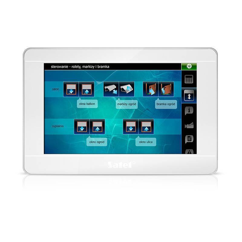 Клавиатура сенсорная SATEL INT-TSI-WSW. Сенсорная клавиатура. Корпус: белый-серебро-белый. Клавиатура с сенсорным дисплеем 7”, выполненным по емкностной технологии и разрешающей способностью 800x480 пикселей: процессор Cortex-A8 800 МГц, слот карт Micro SD и встроенный разъем для соединения Ethernet между двумя клавиатурами; поддержка IP-камер (передают картинку в одном из двух форматов .jpeg или .mjpeg). Неограниченное количество вкладок управления (создает пользователь) + неограниченное количество МАКРОС-команд (до 8 клавиатур в системе). К Integra можно подключить максимум 8 тачскриновых клавиатур. Благодаря тому, что данная клавиатура работает с IP адресом, к каждой из 8-ми клавиатур на тот же адрес можно подсоединить параллельно в режиме slave еще одну клавиатуру. Суммируя 8 главных + 8 второстепенных, всего 16 INT-TSI обслужит 1 Integra 64/128/256. Операционная система устройства, Windows CE, для применения в устройствах, работающих в непрерывном режиме. Стеклянная пластина для защиты экрана, полная персонализация интерфейса, управление автоматикой с помощью виджетов.196x129x22 мм, -10 °C...+55 °C.