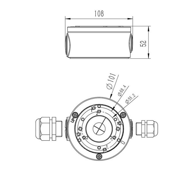 Коммутационная коробка для скрытой и безопасной установки разъемов камер видеонаблюдения. Обеспечивает защиту соединений от внешних воздействий, таких как влага, пыль и механические повреждения.